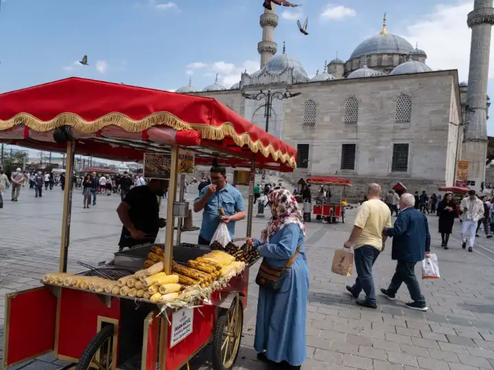 Boiled corn-on-the-cob vendor at Eminonu port
