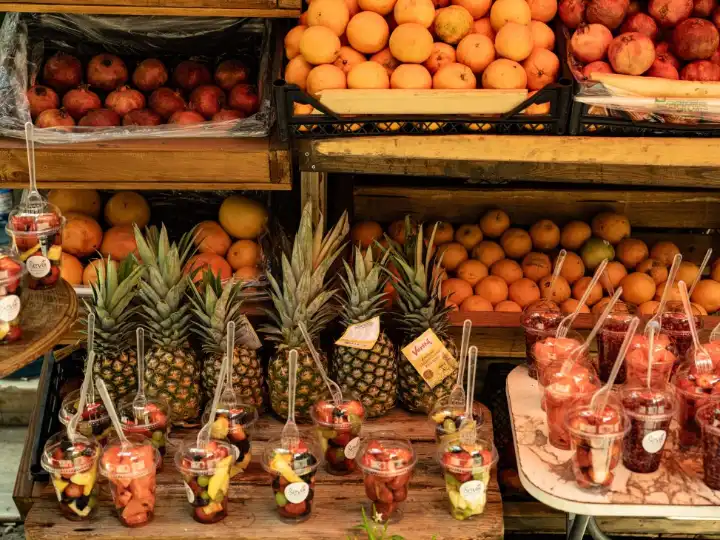 One of the city’s vitamin bars, where fresh juice is squeezed to order