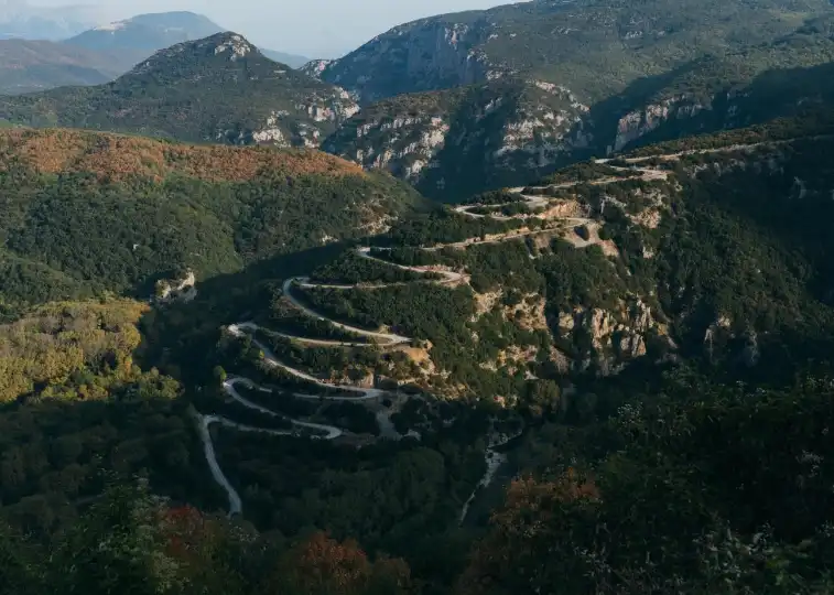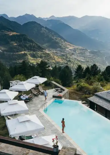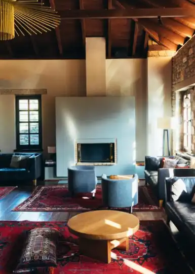 “I call it the Greek safari,” says Maria Koulakidou, sales manager at the Grand Forest Metsovo hotel. We are welcomed into the building with hot mountain tea and invited to relax on dark-blue sofas adorned with embroidered pillows in traditional motifs. “You’ll find handmade furniture throughout the hotel, as well as pieces inspired by regional craftsmanship and Greek art,” says co-owner Ellie Barmpagiannis. Floor-to-ceiling windows frame the tranquil valley views. “I always return to the mountains when I want to feel grounded,” says Barmpagiannis. As the day comes to a close, we head to the hotel pool to enjoy a swim and reflect on the path that led us here. Next time you crave an escape, why not follow in the footsteps of the Greeks: venture north and take the road less travelled.