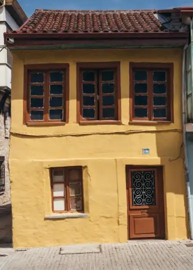 One of the mustard-yellow houses dotting Ioannina