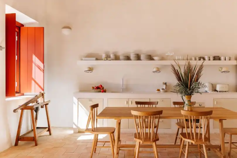 Lisbon-based architect Frederico Valsassina preserved key features of the buildings, such as their prominent chimneys, and used traditional materials including cane strips to create rustic living quarters.