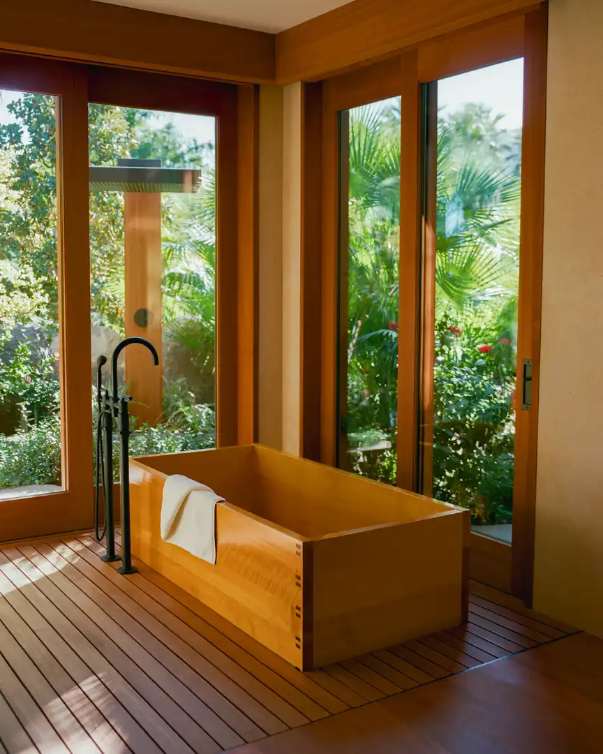 Despite all the space, there are only 22 places to stay on the property, comprising standalone villas dotted through the grounds and suites in the single-storey estate house, which also contains a Nobu restaurant. The bedrooms are understated, verging on spartan, with light wooden interiors and vast windows that frame the gardens beyond. Staff say that the design is about drawing the eye to the estate’s abundant nature rather than the hotel itself, even if it is choreographed: the waterfalls that bubble through the grounds subtly change their cascade according to the time of day, calming to a restful flow after dark.