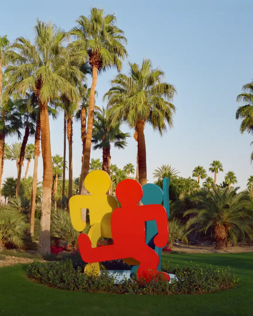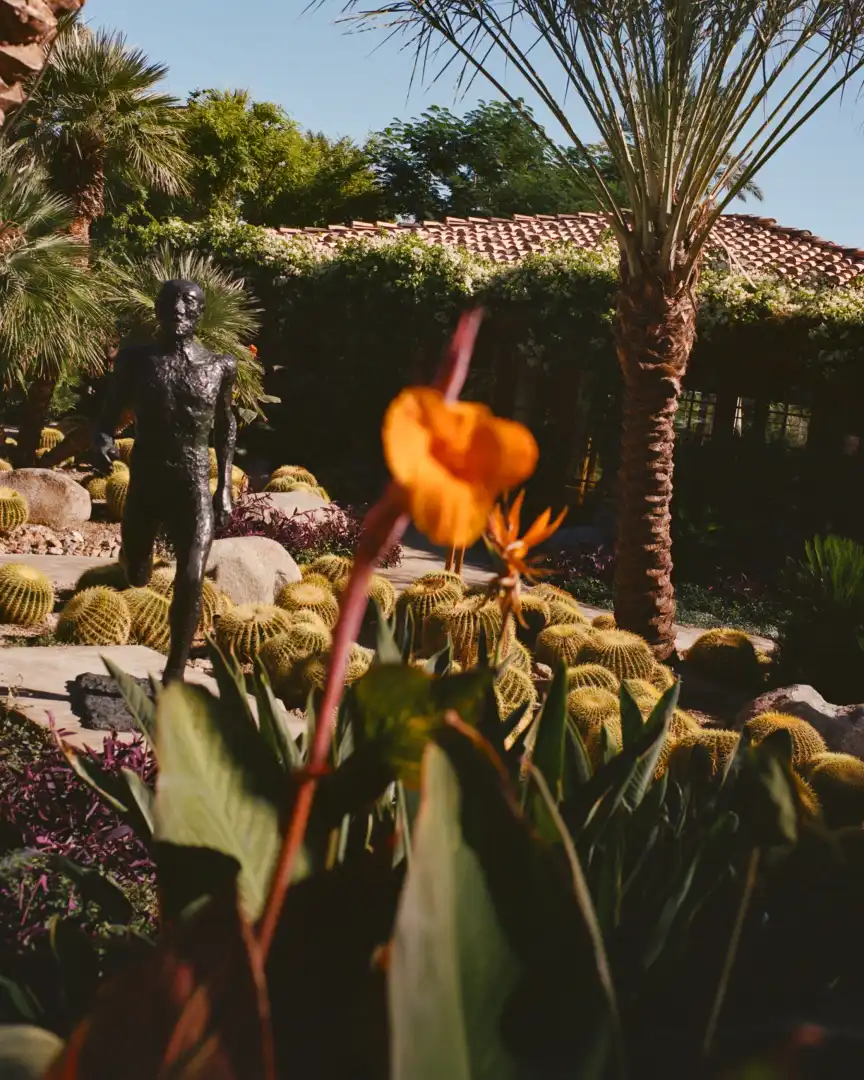 The most inspiring stay is Sensei Porcupine Creek, a hotel at the end of a winding street of mid-century modern bungalows in Rancho Mirage, a community in Greater Palm Springs. The resort, on the estate of technology entrepreneur Larry Ellison, sits on 93 hectares of desert garden interwoven with a manicured golf course. Amid this otherworldly landscape of succulents and meandering trails perfumed by the musk of the creosote bush is Ellison’s extensive sculpture collection, including a stack of Keith Haring’s red, yellow and blue figures – a shock of colour peeking out from behind the palm trees.