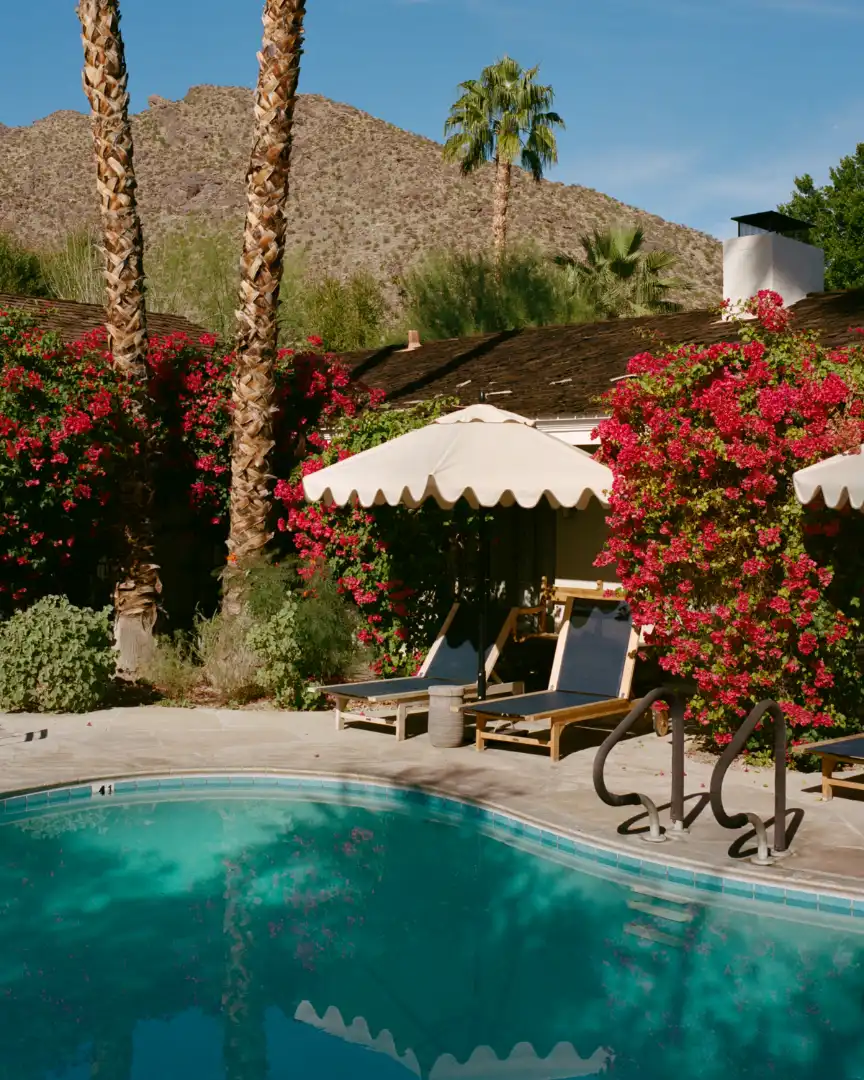 The past few years have seen several sensitive restorations take place that have breathed fresh life into old lodgings. Azure Sky, which reopened in 2022, took the bones of an old motel and brought a sense of spaciousness and light back into the rooms. Casa Cody, in downtown Palm Springs, is a hotel that hosted Hollywood stars throughout the 1930s and once belonged to Harriet Cody, a cousin of cowboy showman Buffalo Bill. “We wanted to keep the residential feel of the estate in the design and the renovation,” says Carolyn Schneider, co-founder of the Casetta Group, which added muted colours to Cody’s old home that emphasise the bright bougainvillaea spilling over the walls and roofs. Orange and grapefruit trees give shade to the gardens.