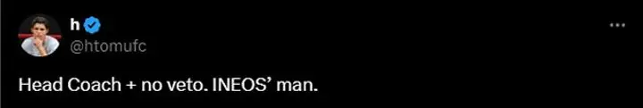 Another posted: 'Ten Hag — "Manager". Amorim — "Head Coach". Welcome to the INEOS era.' A third said: 'Head Coach + no veto. INEOS’ man.'