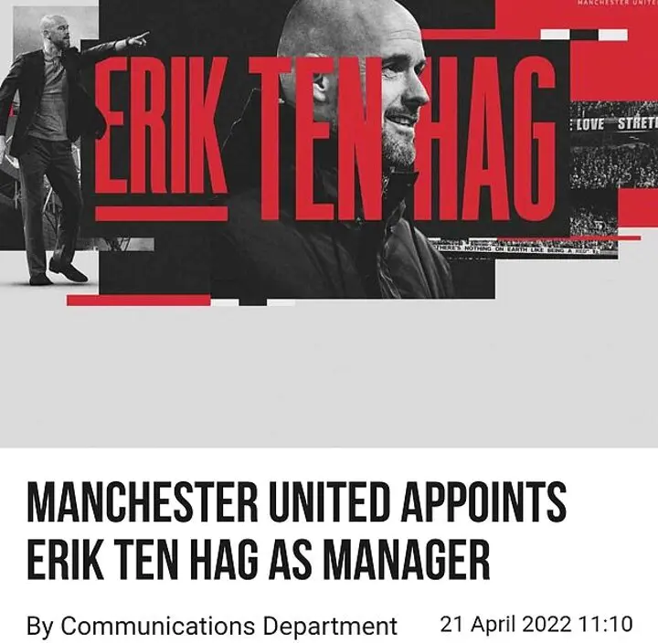 Immediately, some United supporters on social media spotted that Ten Hag had been announced as 'manager' when the club confirmed his arrival in April 2022. The change indicates difference in their respective roles.
